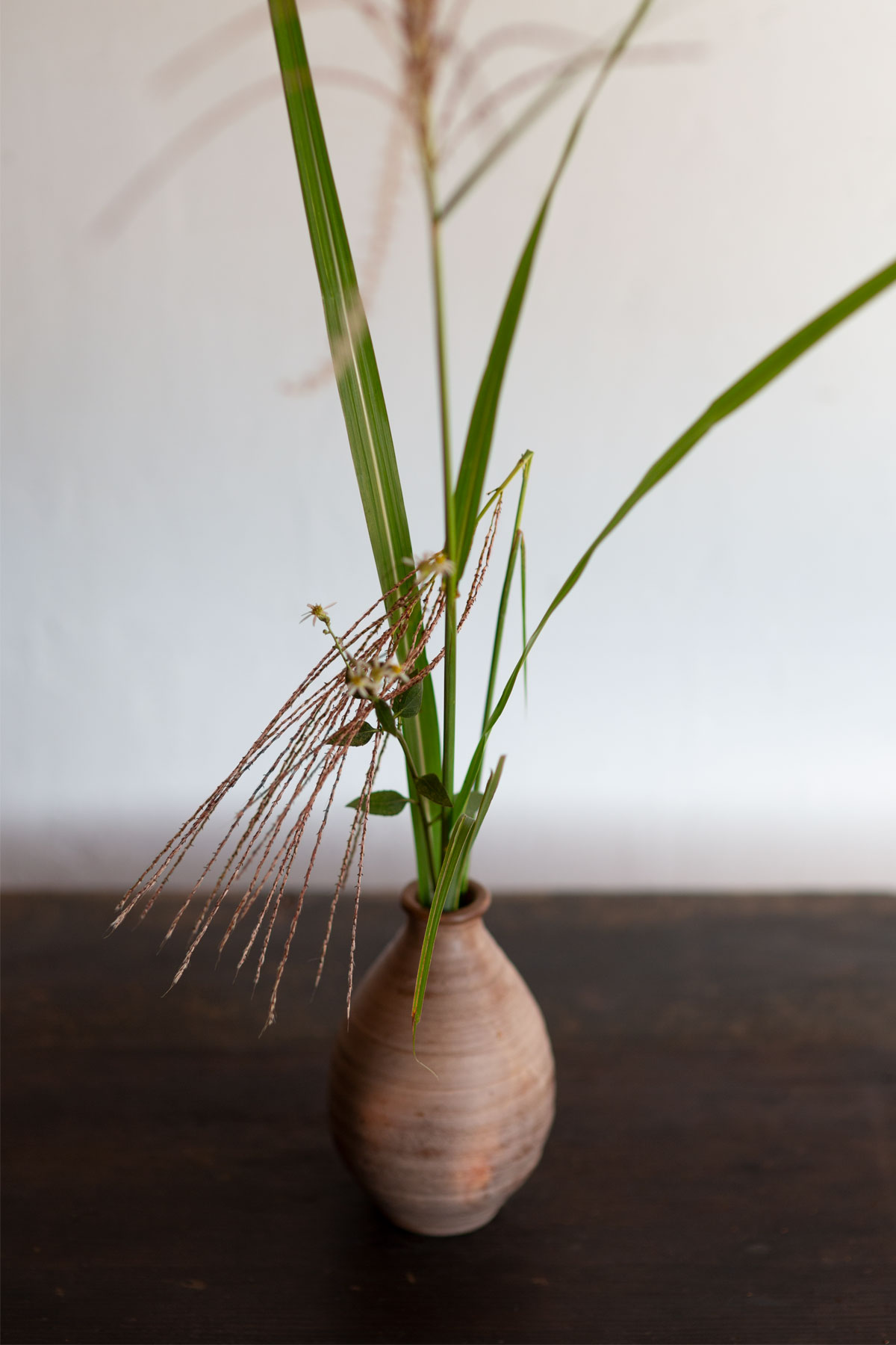 約3時間のワークショップでは、参加者が自分でお好きな花器を選び、齊藤さんの育てた野草を自由に生けます。