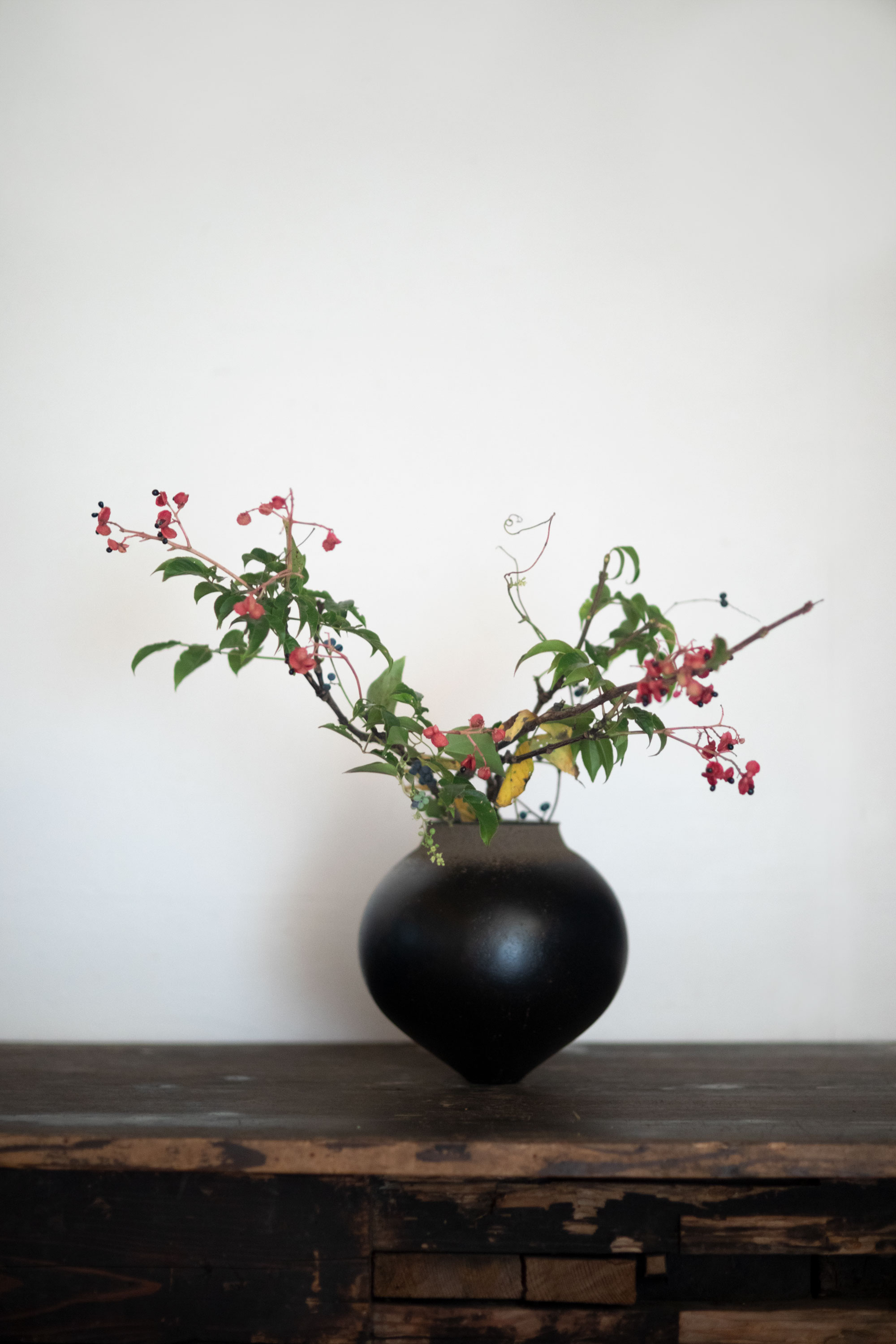 秋の草花と、安齊賢太さんの花器。その響き合いから生まれる、季節の空気感をたっぷりとお楽しみください。