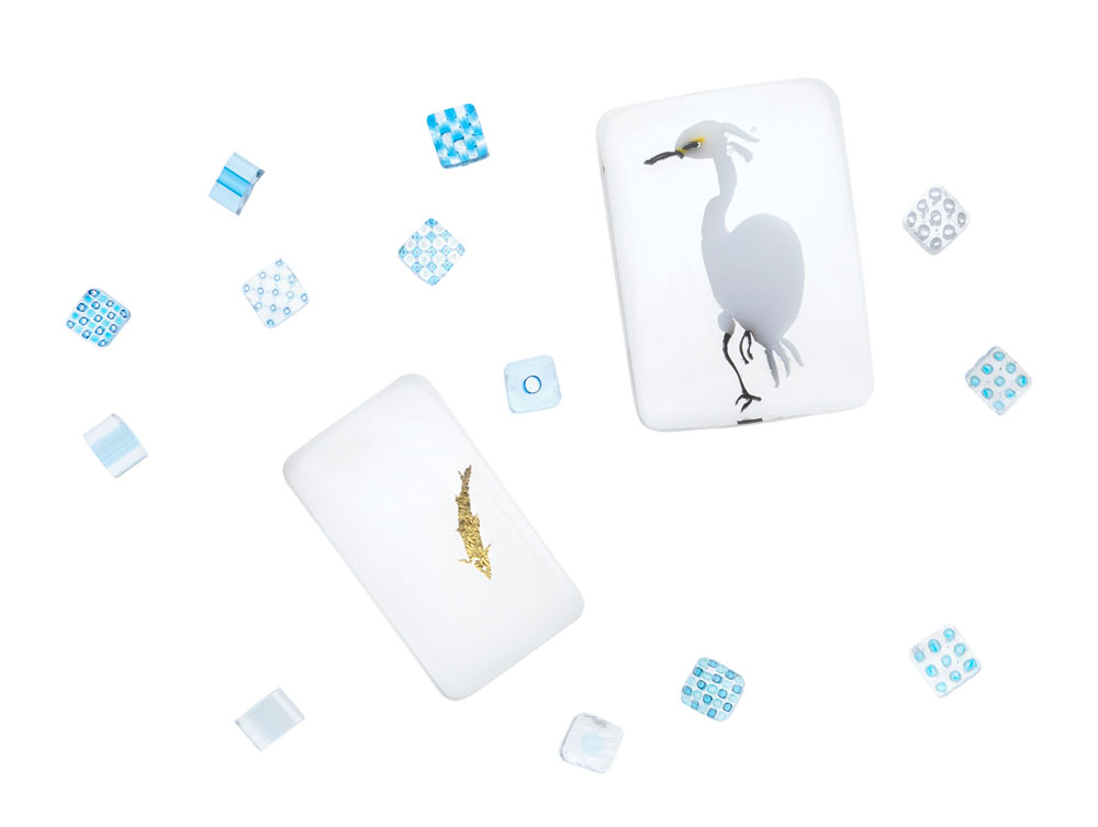 初めての二人展は、始まりに一冊の本がありました。江波さんから由良さんへ贈られたその小説は、それぞれの暮らしの中に息づき、やがてガラス作品には小説を彷彿させるシーンが描かれるようになりました。三浦の海辺で、滋賀の湖や川辺で、それぞれが感じた小さな生き物たちの営み、それを取り巻く水辺の気配。二人が奏でる世界観をお楽しみください。