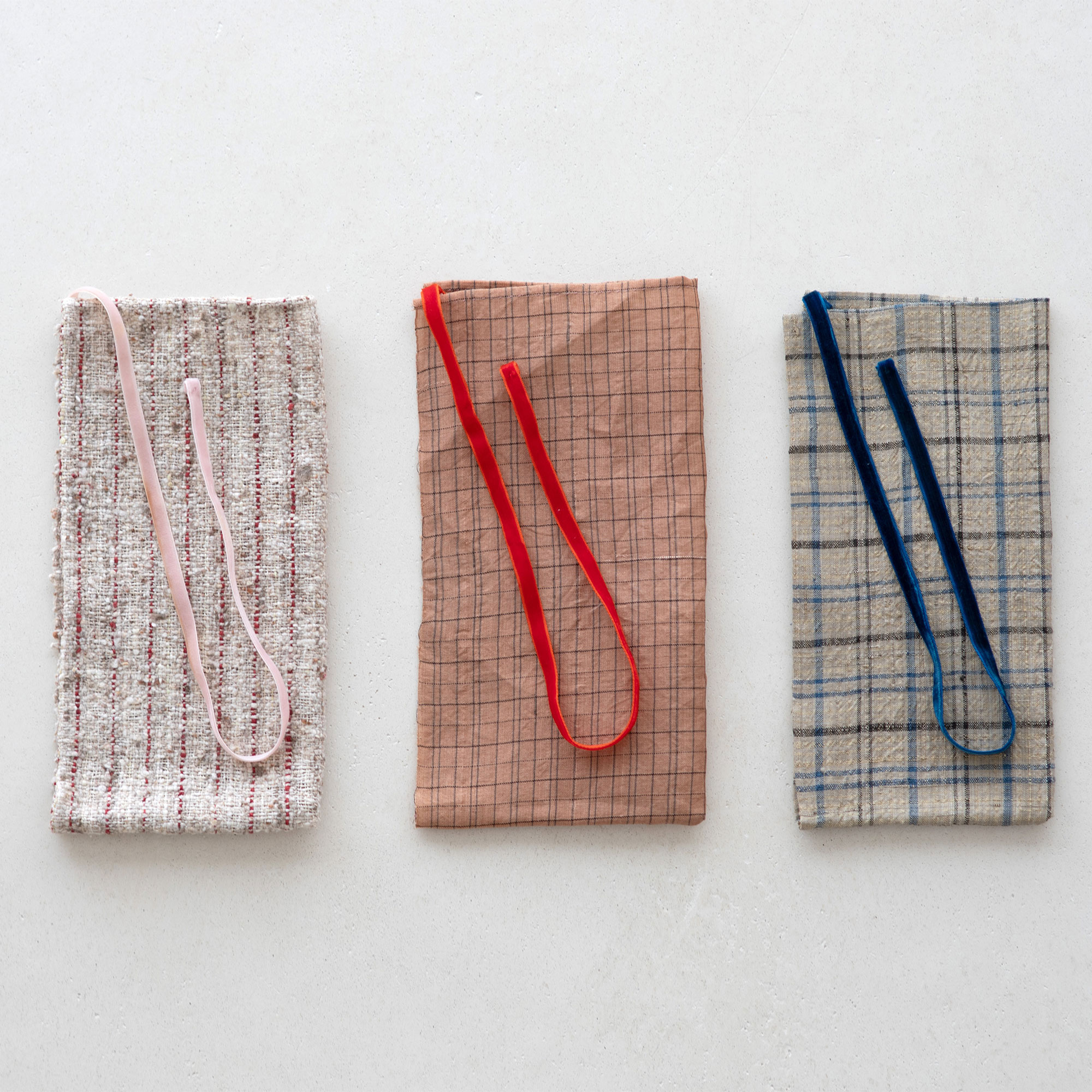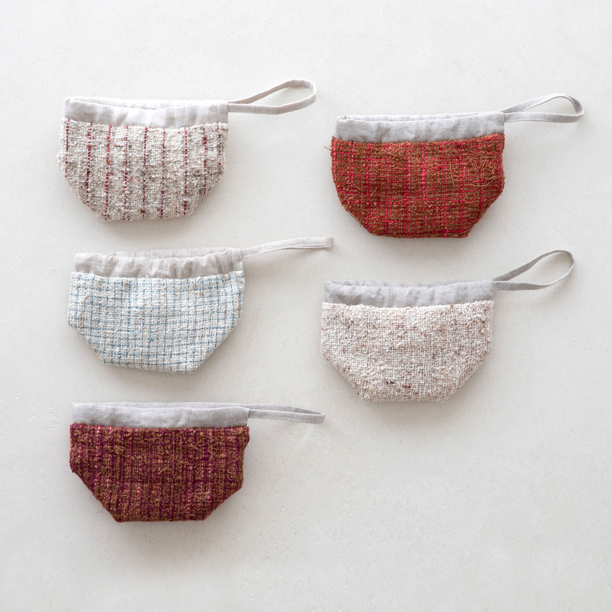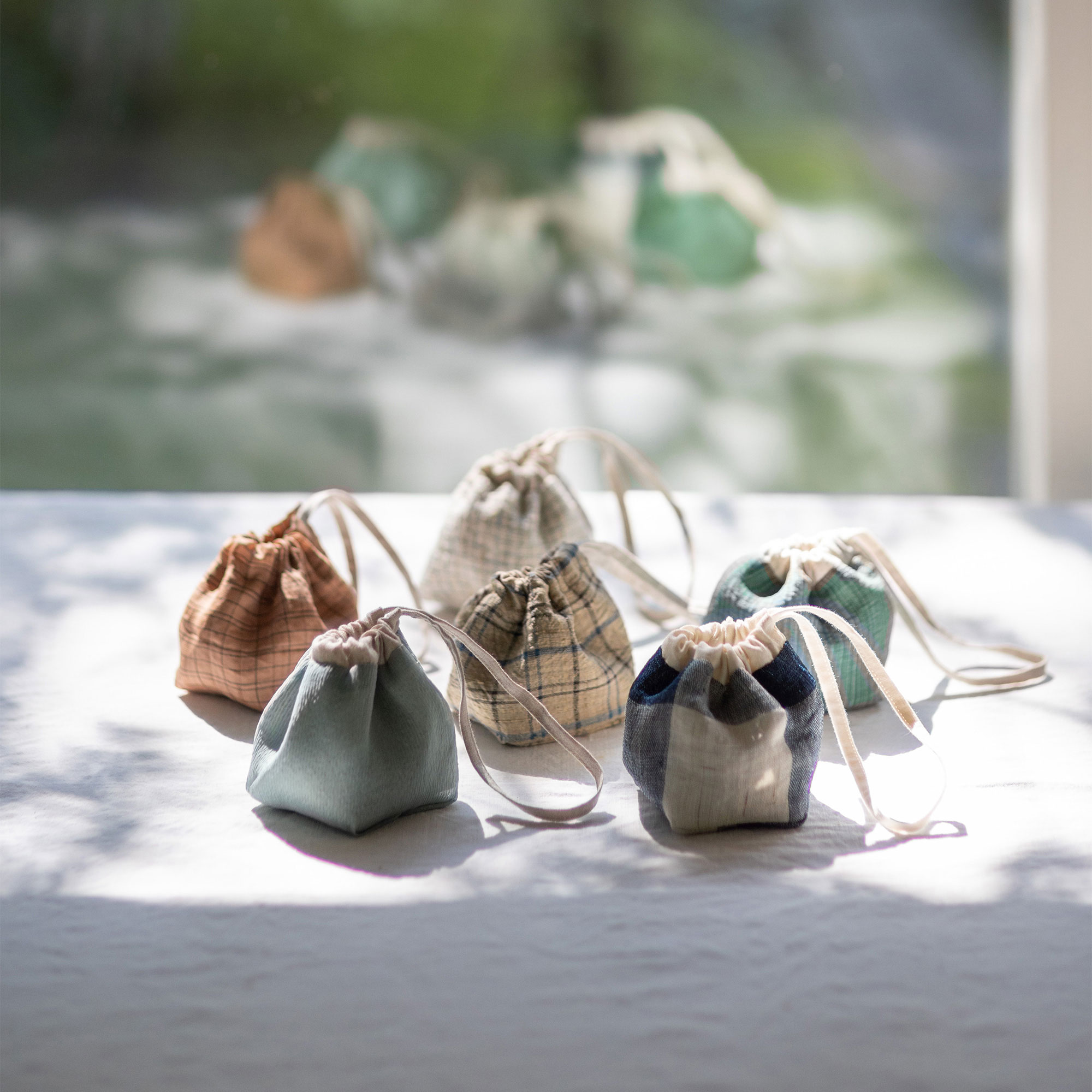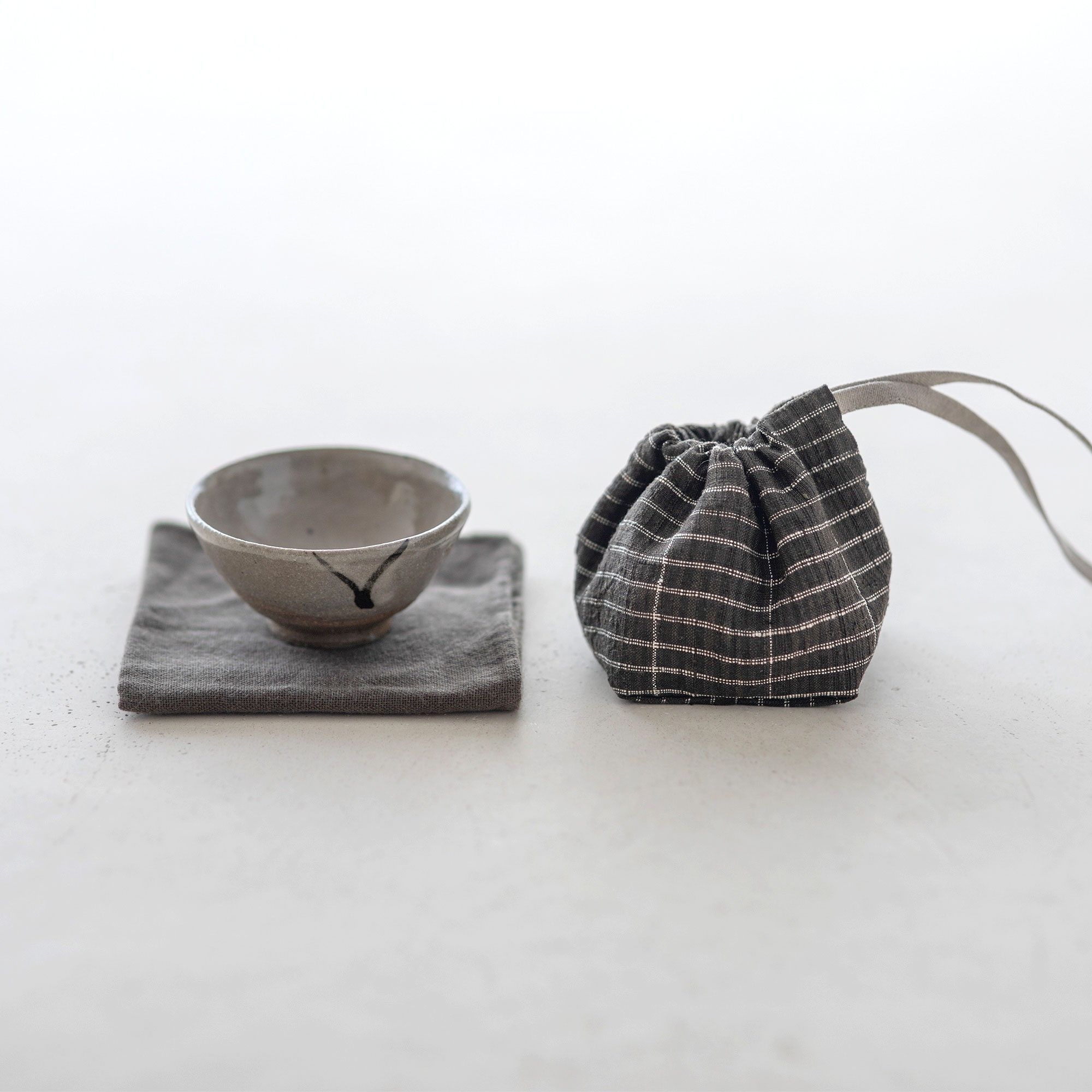 2年前に、小灯ではサロンと酒器袋展を開催し、サロンを履いた時の心地よさや表情を、お気に入りの器に纏わせる酒器袋を作っていただきました。今回はさらに、紐付き綴じ