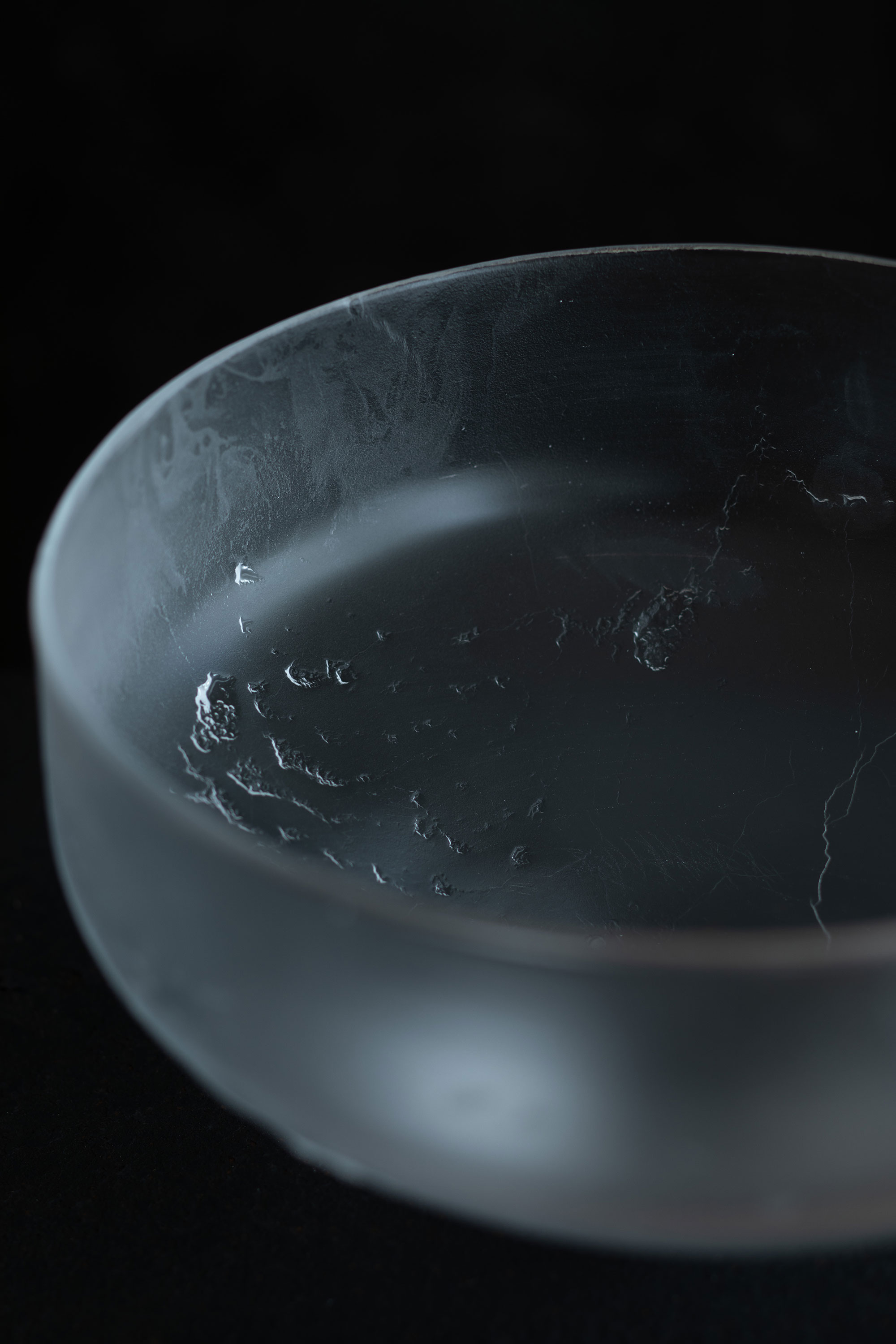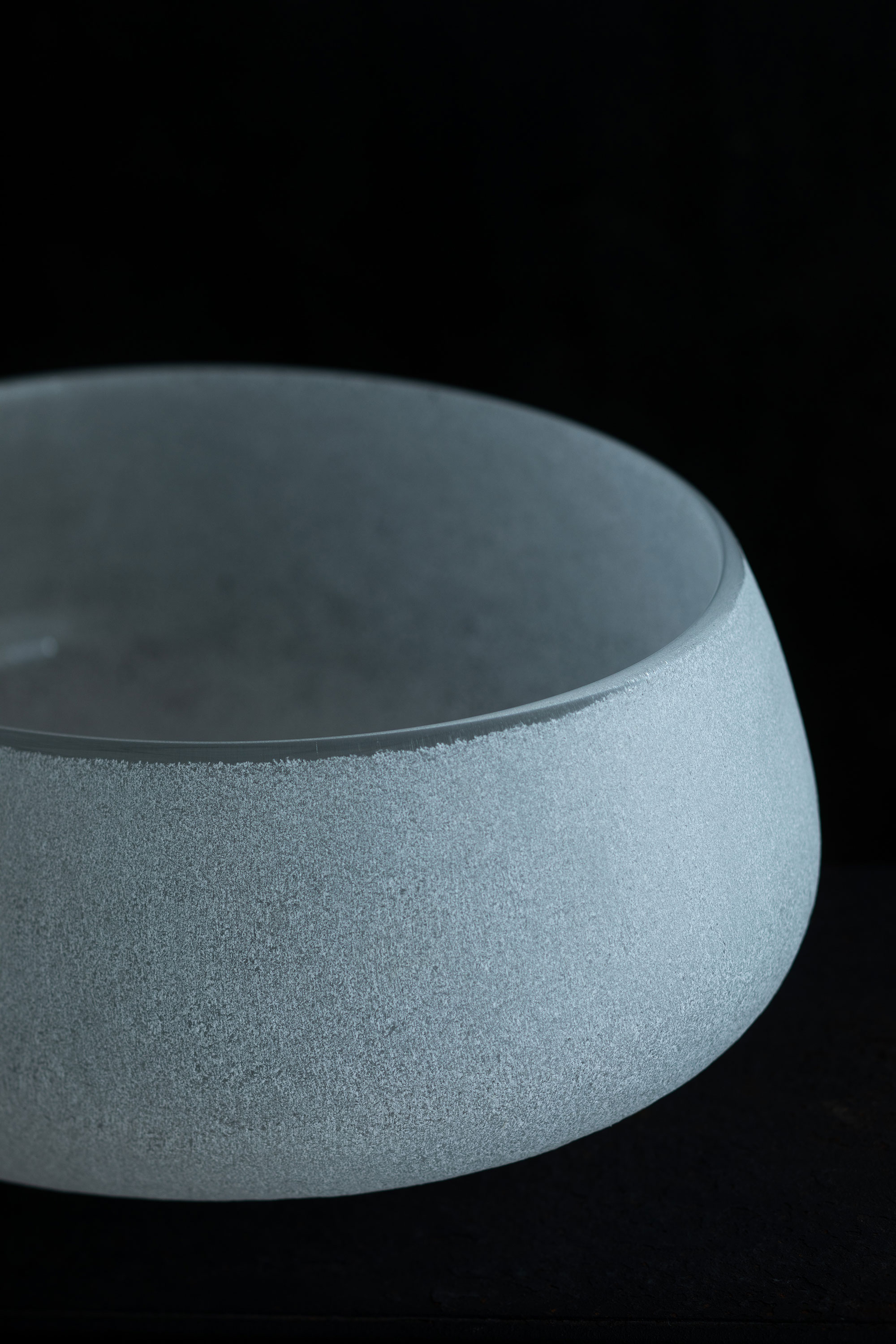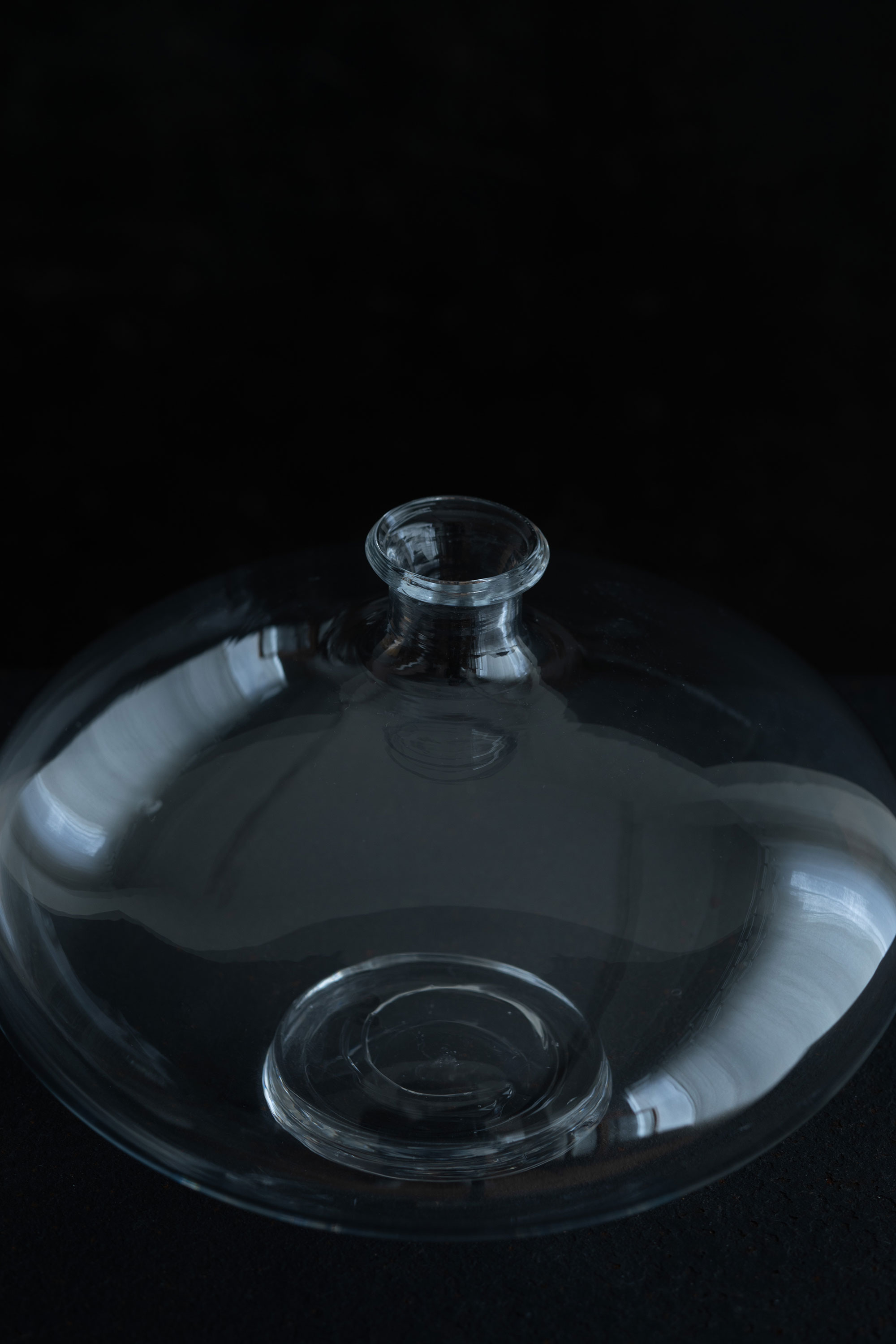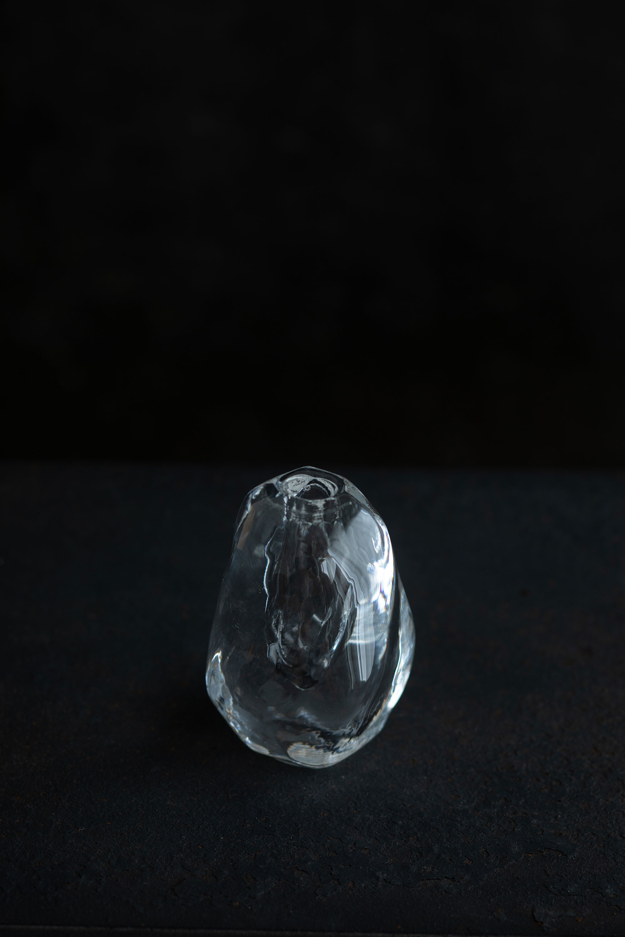 秋田に暮らして8年になる瀬沼さん。日々の風景、季節の空気感など五感で受け取るものが、制作につながっているそうです。今展では、冬の秋田をイメージしたものが多く並びます。季節によって表情を変える水のように、凛とした冬の気配をまとうガラスの表現。 新たに取り組んだガラスの敷板は、曇り空や雪景色を写したかのよう。花器と花と敷板の奏でる風景が楽しみです。