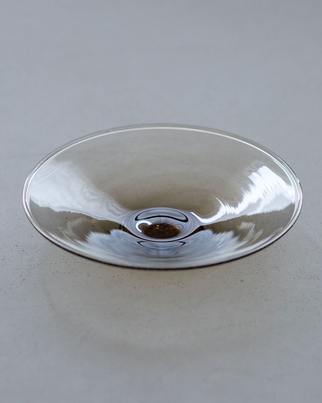 科学的なことはいずれさらに解明されるとして、固体か液体かという問いかけは、小澄正雄さんのガラスを奥深く楽しませてくれる。固体と液体、両方の性質が、小澄さんのガラスの佇まいの中で見え隠れするからだ。