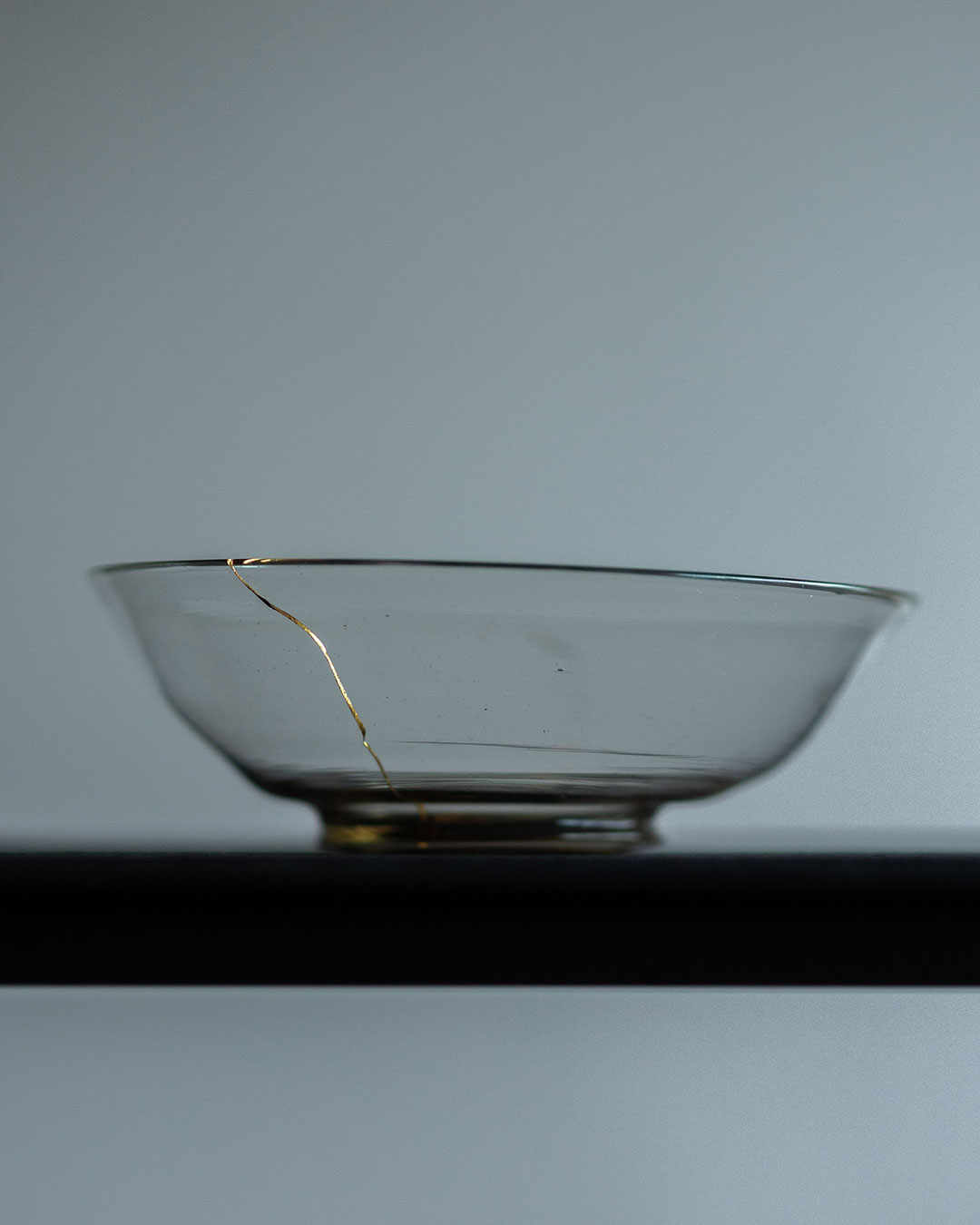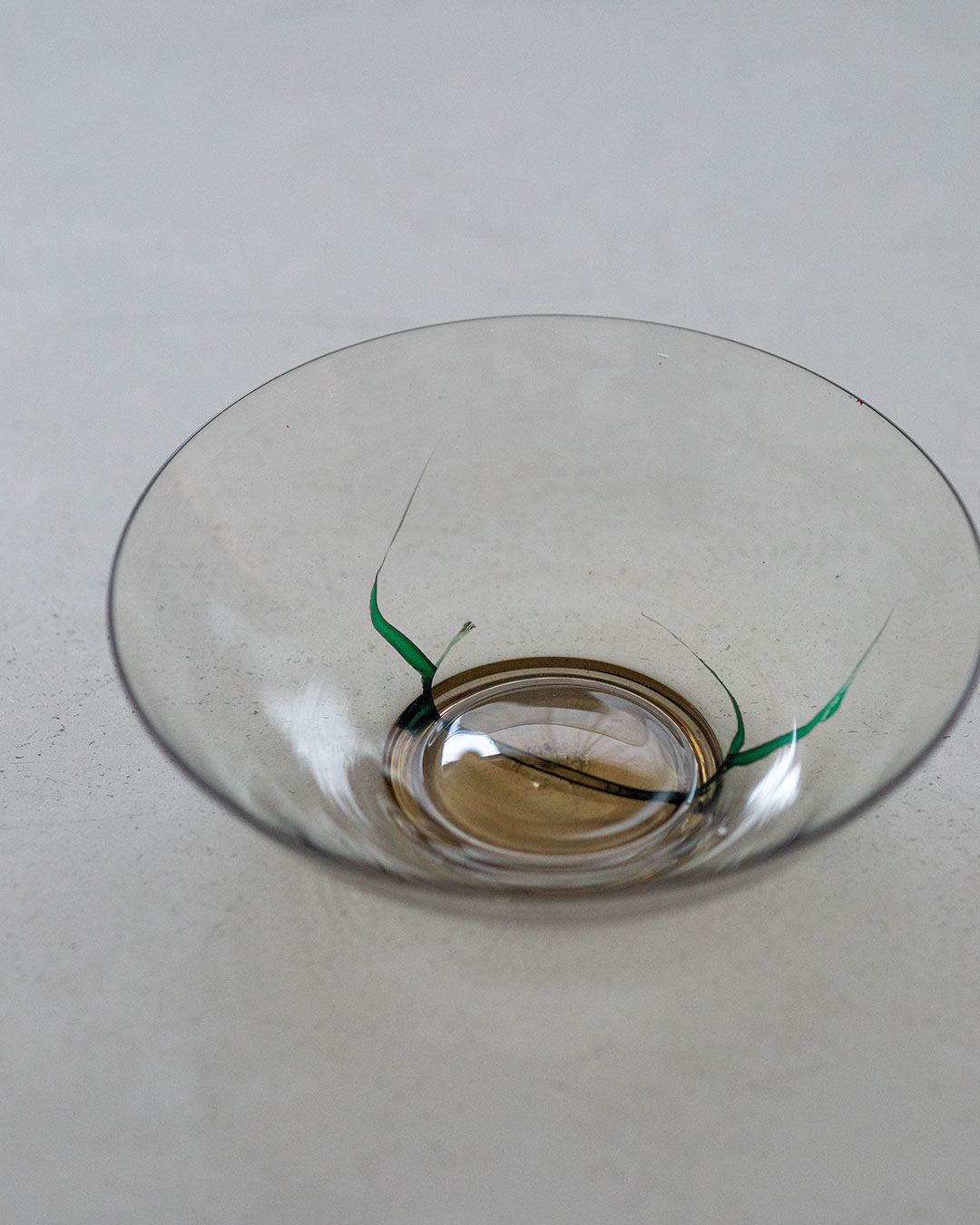 固体と液体の中間状態というガラスの特質は、目に見えにくいものだけれど、ガラスが秘めている不安定さ、脆さ、不完全さは、"繕い"によって可視化され、固着化される。