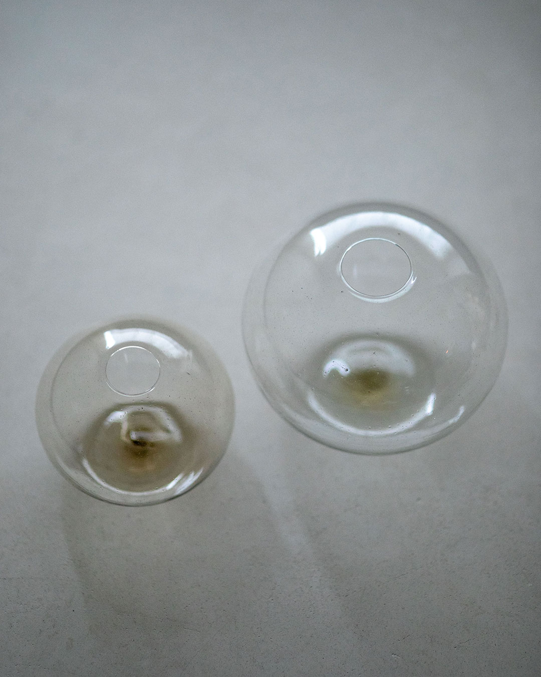 この"際"の先に花を生ければ、ガラスは液体、水のかたまりとなり、植物とともに景色を語り始める。花はガラスを固体から液体へと感覚的に変化させる装置なのかもしれない。そして花もまた、固体で在り続けることはできない存在。生けるその時、まなでるひと時、その"際"を咲かせて移ろっていく。