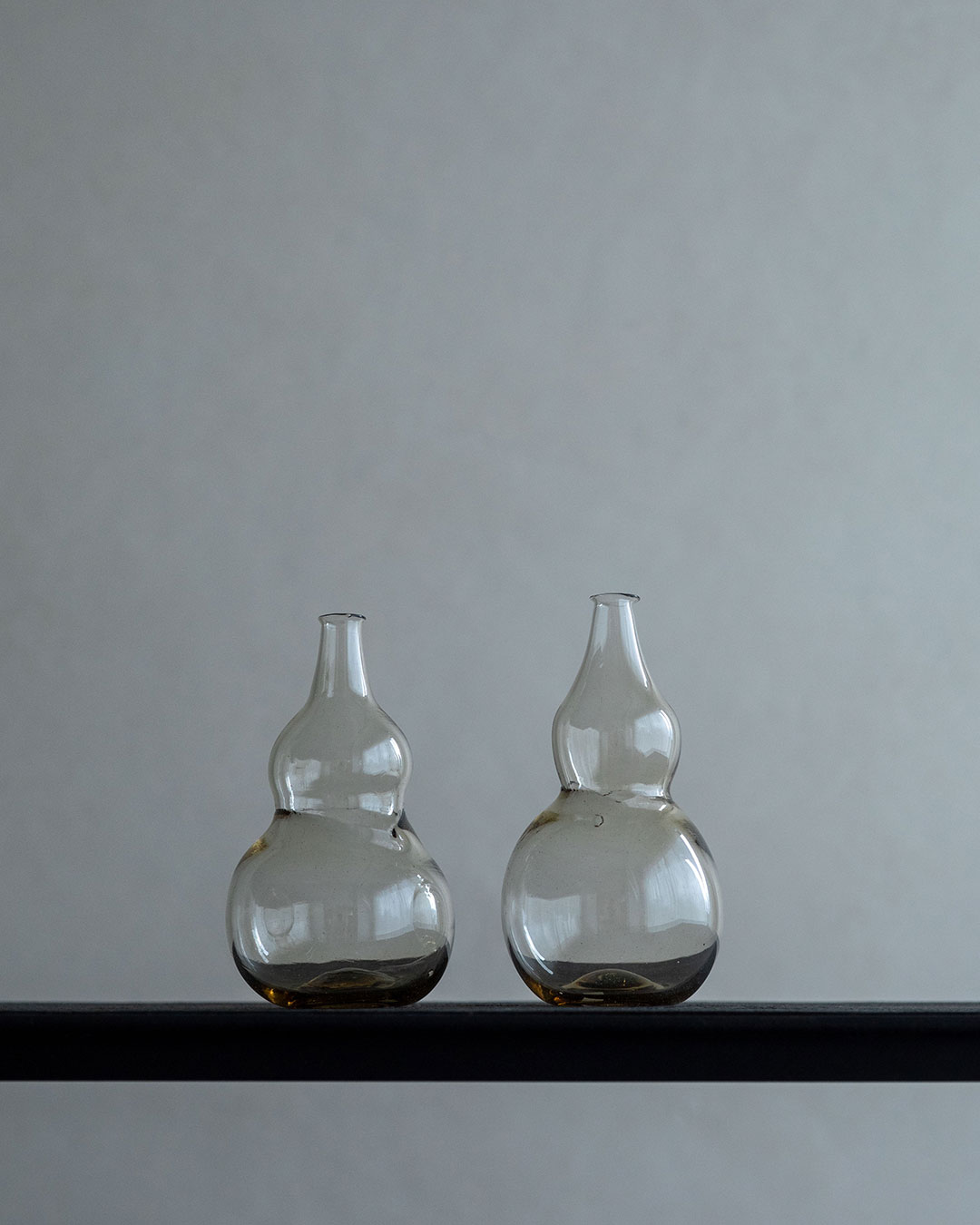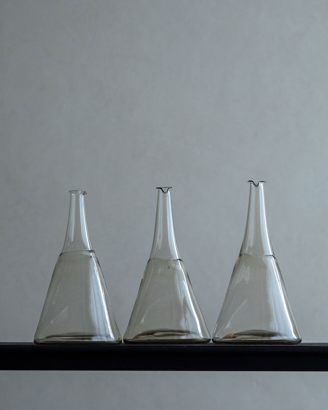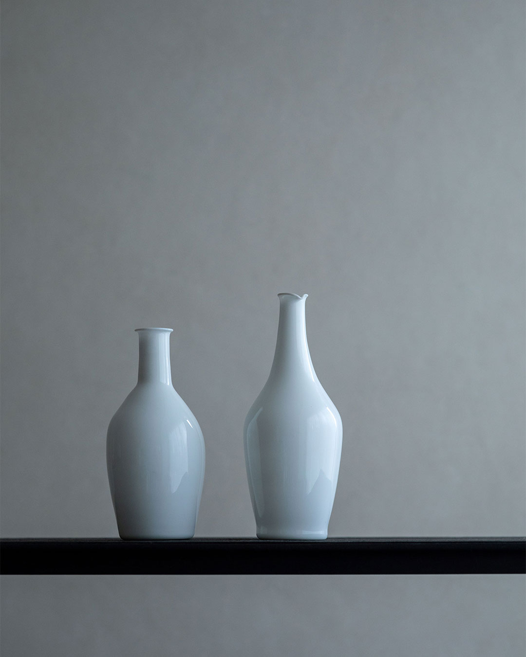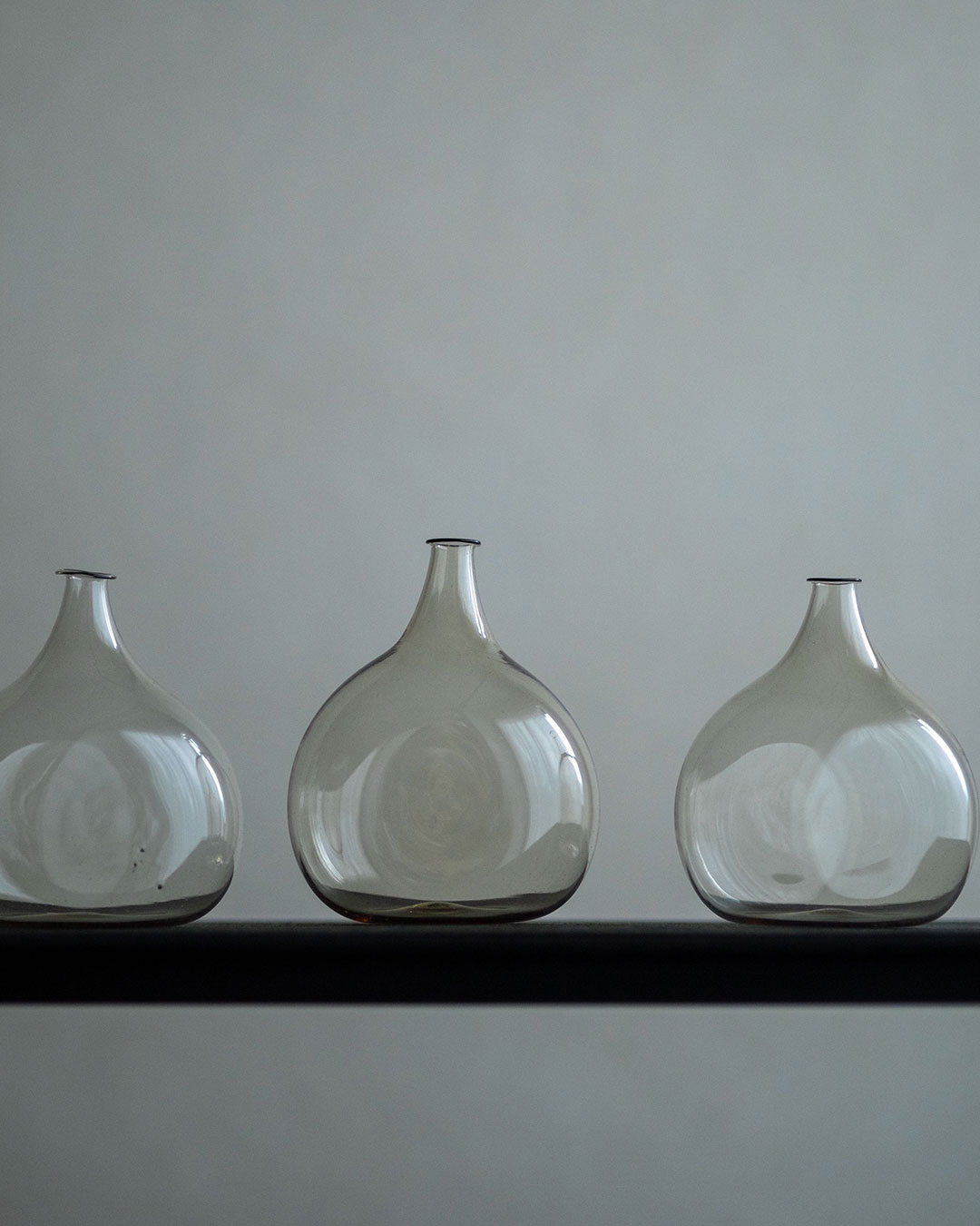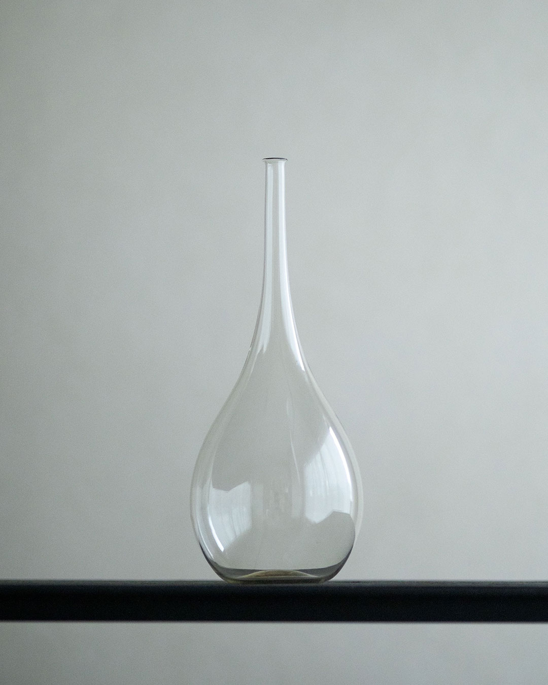 雫のような形のボディからすっと細くのびる鶴首瓶。繊細にたたずむ口縁の"際"は息を呑むほど美しい。